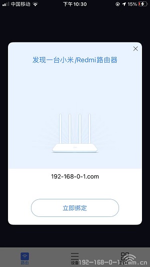 3.登录APP后,它会自动搜索小米路由器的wifi名称。搜索到后,点击立即绑定,接着输入自己路由器的登录密码就行;