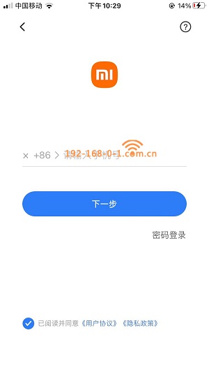 2.在APP里注册小米账号,或者用手机验证码登录。输入自己的手机号码,收到验证码后输入,即可完成登录;