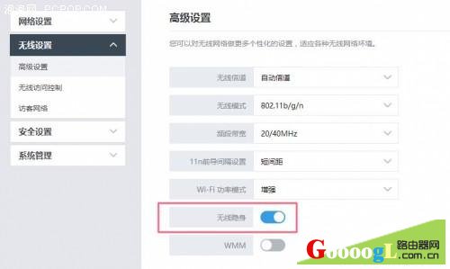 具体的操作方法就是:先登录自己的路由器管理页面,找到无线设置选项,先设置加密模式为WPA2,然后再将“广播SSID”项关闭即可。另外,现在很多路由器APP上都有隐藏WiFi名称的选项,直接开启也可以隐藏网络。