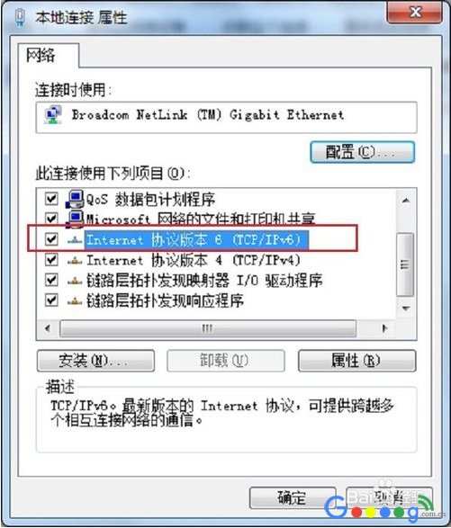 第三步进去本地连接属性之后,选择“TCP/IPV6”
