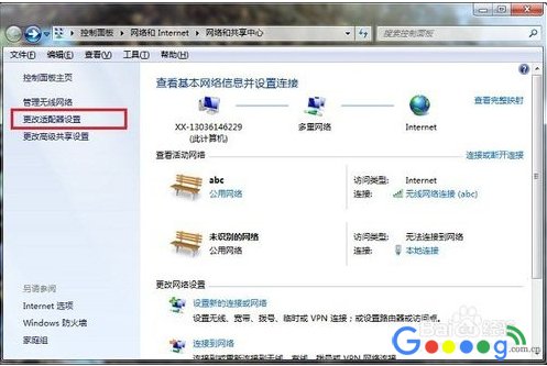然后再回到我的电脑,打开网络和共享中心,选择“更改适配器设置”