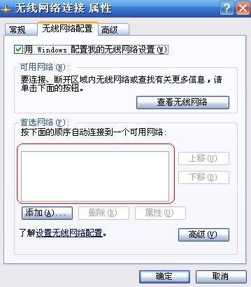 “无线网络连接”-“属性”-“无线网络配置”,将“首选网络”框中内容清空。
