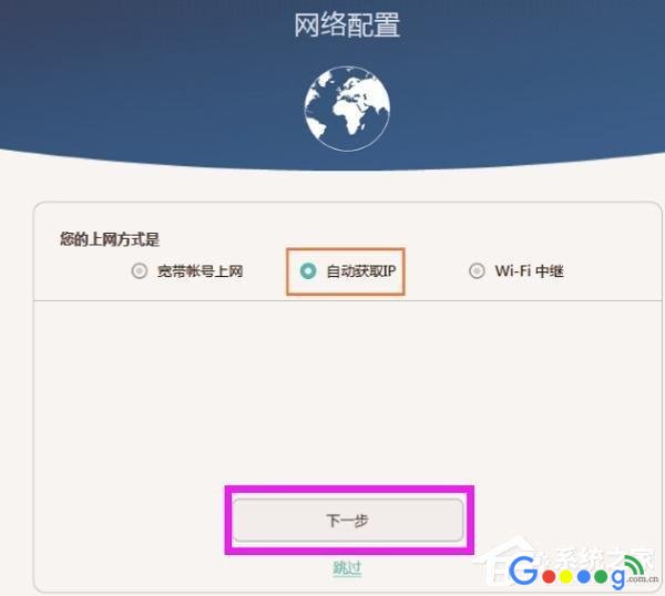 华为路由Q1设置 宽带账号上网注意问题:(1)如果华为路由Q1检测到上网方式是:“自动获取IP”,则直接点击“下一步”即可,本页面无需其它设置了。