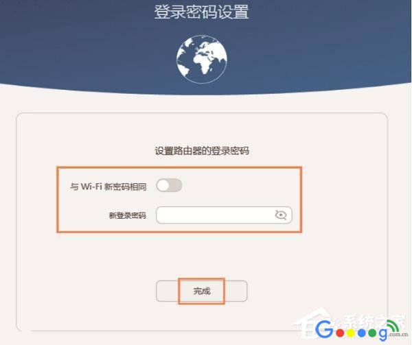 4、设置登录密码建议选择“与Wi-Fi新密码相同”这个选项,把wifi密码同时作为登录密码。如果不想把Wi-Fi密码作为登录密码,可以自定义设置一个登录密码。