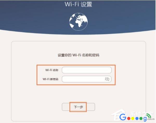 点击 下一步3、设置wifi名称和密码如下图所示,请自定义设置“Wi-Fi名称”、“Wi-Fi新密码”——》点击“下一步”。