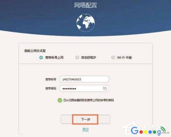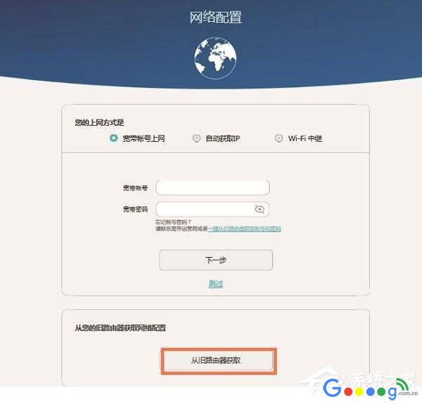 (2)如果忘记了“宽带账号”、“宽带密码”,可以拨打宽带客服电话进行查询。也可以使用华为路由Q1上的“从就路由器获取”功能,从你原来的路由器上获取宽带账号和宽带密码,具体操作如下所示:点击“从旧路由器获取”