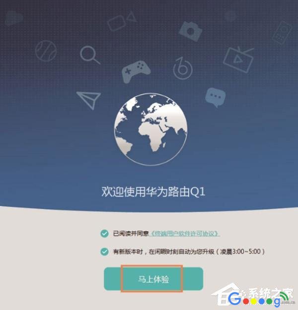 第三步、设置华为路由Q1上网1、打开设置界面打开电脑中的浏览器,在地址栏中输入:192.168.3.1 并按下键盘中的回车——》在跳转的界面中,点击“马上体验”。