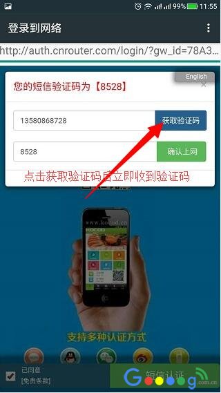 关于无线wifi覆盖:虚拟短信认证上网简单操作流程