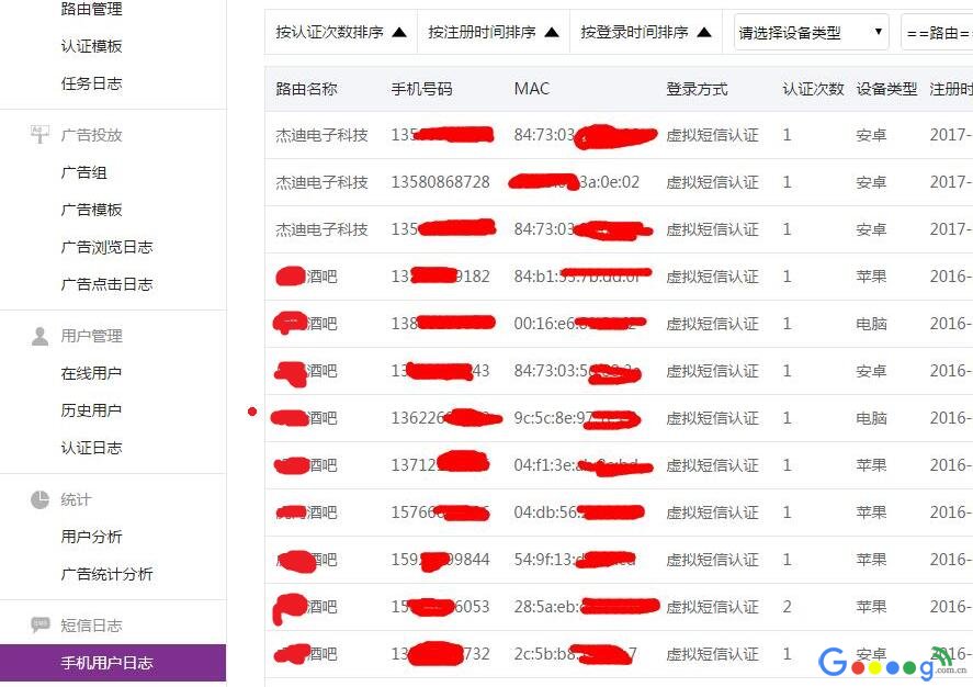 虚拟短信认证上网也是wifi短信认证,通过输入手机号码,获取到验证码的一种上网认证方式,商家从而可以获取用户手机号码,方便二次营销。