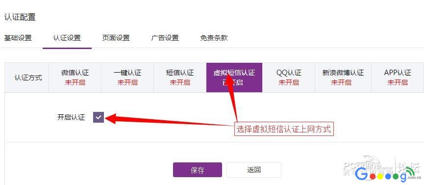 首先需要进去平台修改下认证模板,打开虚拟短信认证上网如下图: