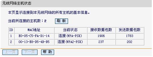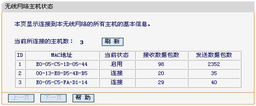 登到路由器管理界面:无线参数——主机状态(如下截图)