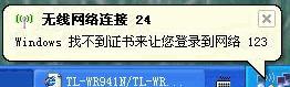 无线连接时,无线网卡提示”windows找不到证书来让您登陆到网络”。如下图: