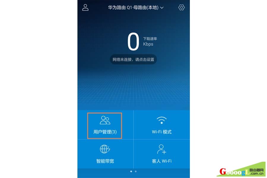 1、手机连接路由器的 Wi-Fi。打开手机中的 华为HiLink APP。点击“用户管理”。