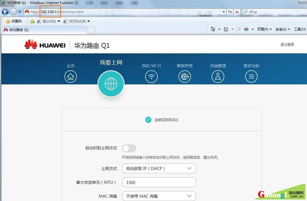 2、打开电脑浏览器,在浏览器地址栏中输入“192.168.3.1”,确认电脑是否能正常访问路由器的 Web 配置界面。