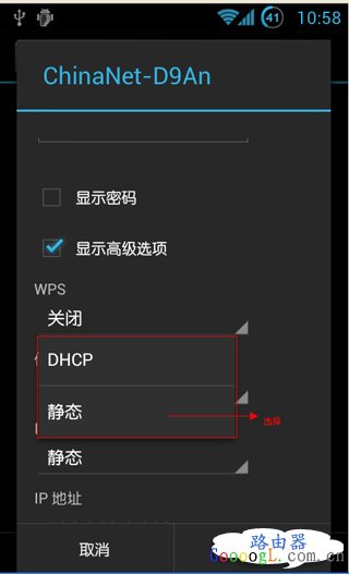 第七步:DHCP那里用手指下滑,拉出静态这个选项。