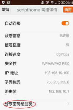 有些手机是支持分享密码的,像小米手机。点击分享密码然后会自动生成一个二维码。如果对方是直接使用相机来扫。无线密码可以直接出现在查看详情里面。如果自己想知道,可以把图片保存在相册里面,用微信扫一扫。
