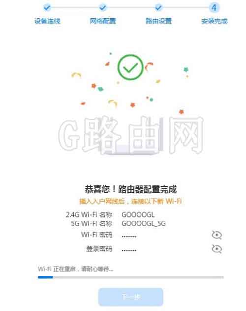 你想继续设置请重新使用新的管理密码登录到路由器。