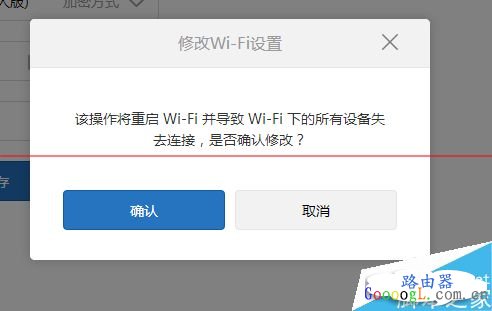 6、点击保存后系统会提示如果进行此操作会重启WIFI,直接点击确定后完成路由器的重启。就完成了穿墙模式的切换。
