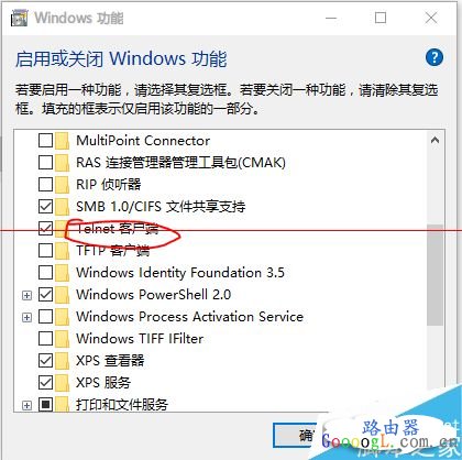 2、在windows功能里打开telnet客户端。打开命令提示符