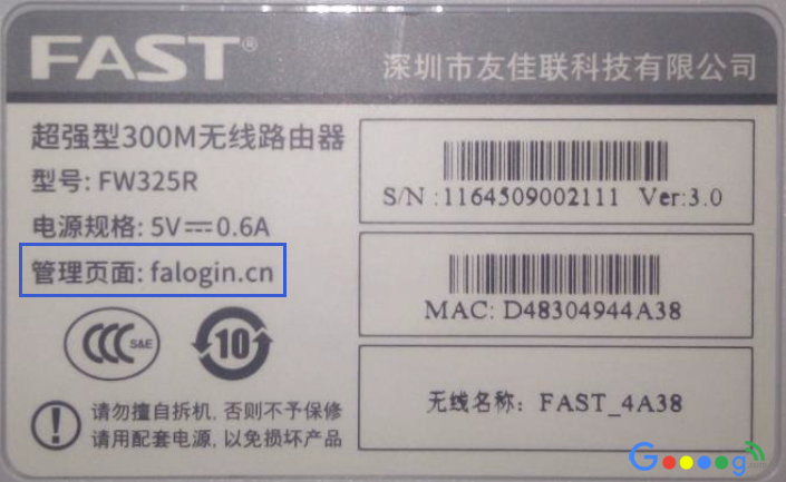 打开浏览器,清空地址栏并输入管理地址;路由器的管理地址一般在路由器后背会有说明标签,如下图: