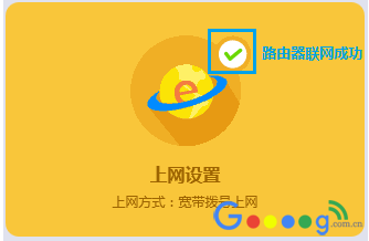 设置完成后,进入路由器管理界面,在“常用设置”>“上网设置”中,如在上网设置图标上显示打钩,即表示网络连接成功。