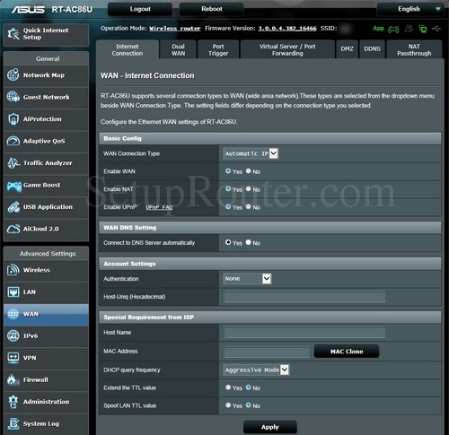 现在,您应该会看到华硕RT-AC86U主屏幕,如下所示。