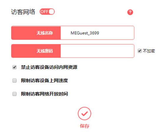 水星:点击高级设置 > 无线设置 > 访客网络,打开访客网络设置页面。