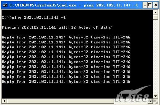 二、二测 测试很重要,这里的测试主要包括两方面的内容。即压力测试、信号测试。其中压力测试主要测试路由器的承受能力,信号测试主要测试稳定信以及无线路由的穿透力。 压力测试一般包括外部测试和内部测试两种。其中外部测试主要是看其对温度、湿度的要求,包括在较高、较低的温度中是否能够正常工作,持续工作一段时间后其散热是否良好,通过这些测试就可以了解产品所说有没有夸大其词的地方。 内部测试就是实际的使用,看在较短的时间内同时打开几十个网页有没有延迟的感觉,如果没有条件进行这项测试的,可以选择在一台电脑上同时下载多个较大的文件,检查其速度和连接情况,从而判断出其性能的好坏。 信号测试是与压力测试紧密相连的,在做压力测试时可以检测信号是否稳定,客户端的连接是否正常。同时也可以使用“Ping 外部IP -t”命令来检查有无掉包(图2)。另外很多企业在选择宽带路由时都有无线的功能,这就需要在测试信号的时候检查无线信号的穿透能力,比如隔一堵墙看信号有没有大的衰减,离较远的距离信号是否能够依然稳定等。 图2