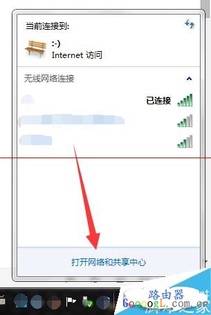 1、点击屏幕右下角的网络连接的图标打开网络和共享中心。