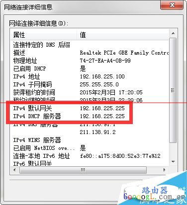 4、里面的IPv4 默认网关 和 IPv4 DHCP 服务器 里的内容就是无线路由器的IP了