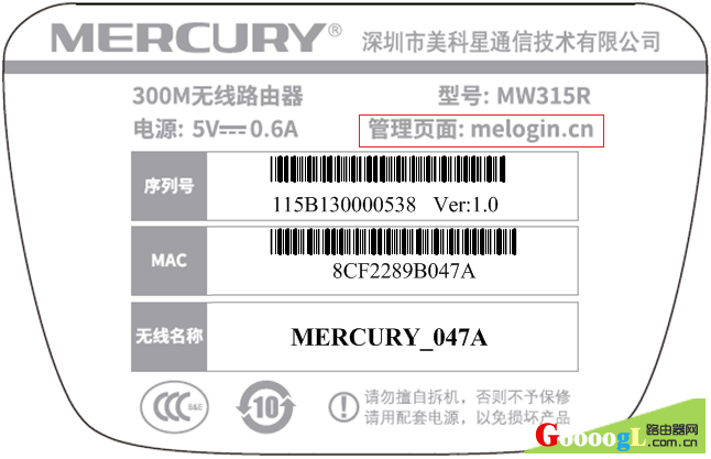 具体登录地址请查看路由器底部的标贴纸,如下图: