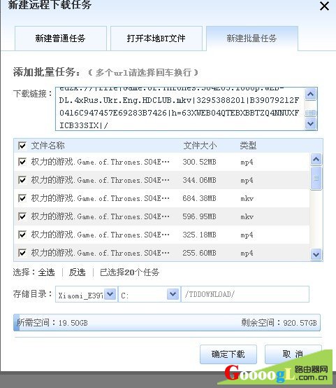 选择新建批量任务,粘贴,点击确定 ,OK了,大功告成。(大家也要看一下存储目录噢,要选小米路由器目录)。