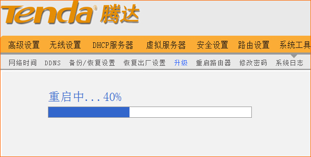 2.升级完成后路由器会进入自动重启状态