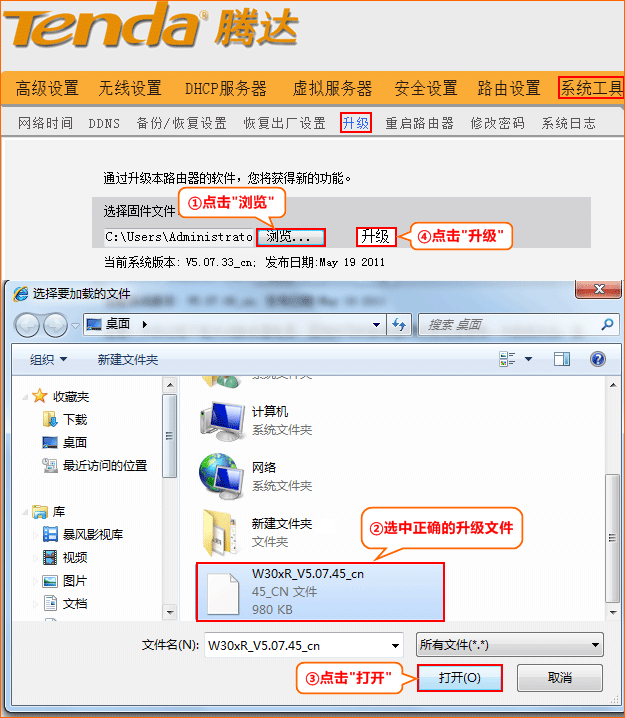 tenda腾达路由器怎么升级固件?一般路由器正常使用过程中是无需升级的,升级步骤确保按照以下步骤来操作,如需升级请进入路由器管理界面进行后台操作,方法如下: