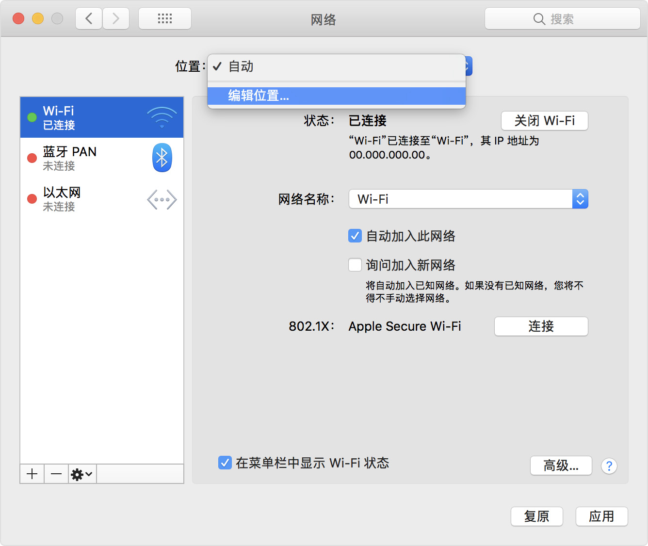 步骤1.在您的桌面上,单击无线图标,然后选择“打开网络偏好设置”。