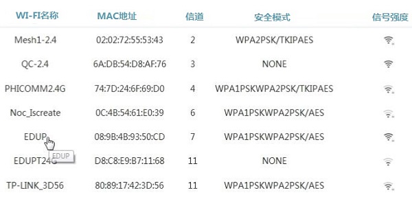 搜索并连接edup路由器的默认WIFI名称。无线名称通常为:WIFI-2.4GEXT或5.8GEXT