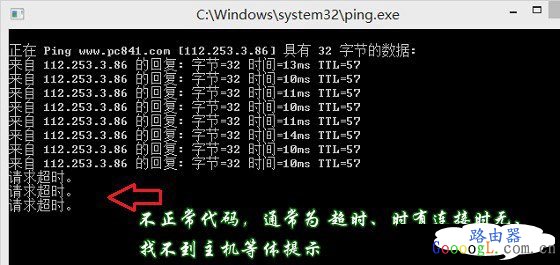 上图为连接正常界面,如果电脑与路由器通信不正常,那么会提示有超值、找不到主机等提示,说明电脑访问路由器有问题,那么这种情况很可能是路由器坏了。
