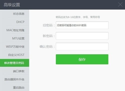 进入高级设置界面以后点击【修改管理员密码】。然后再输入旧密码,再输入两次新的密码。最后点击【保存】。