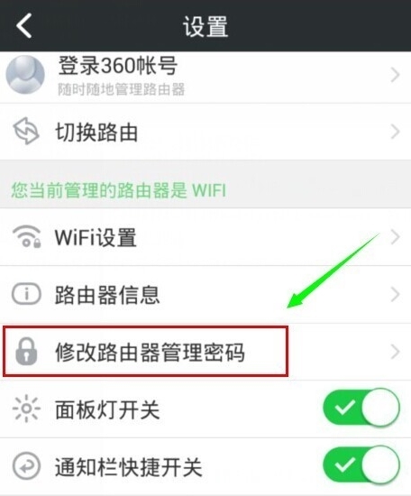 进入360安全路由器手机版的设置界面。点击【修改路由器管理密码】