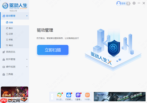 为此,推荐使用“驱动人生”工具进行驱动管理。该软件能够智能扫描系统中的驱动状态,精准识别过期或缺失的驱动,并支持一键自动更新,极大简化了手动查找和安装的繁琐流程。
