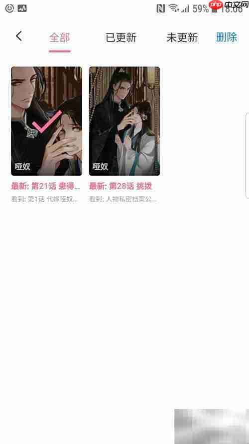 4、 点击进入订阅的漫画页面,即可开始阅读。阅读界面功能丰富,已更新与未更新的章节分类明确,帮助用户清晰掌握阅读进度,轻松分辨已读和未读内容。