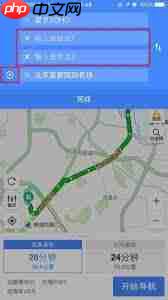 完成所有途经点设置后,点击“开始导航”,高德地图便会智能计算出一条包含全部途经点的最优行驶路线,并实时显示预计到达时间与路况信息。