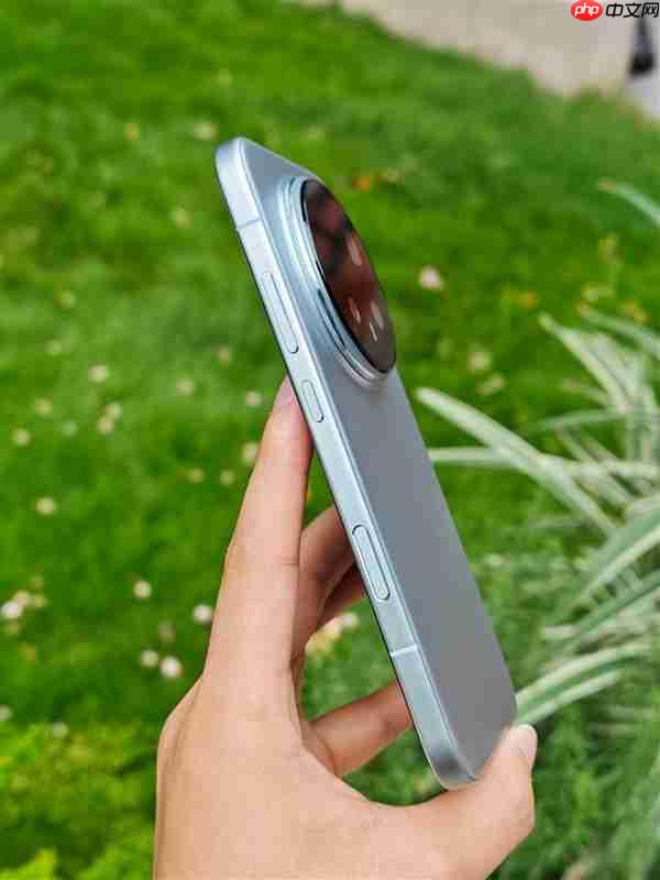 真机显示,荣耀Magic8 Pro采用等深微曲屏设计,顶部为类似iPhone 17的胶囊屏形态,专门用于实现3D人脸识别功能。金属直角中框搭配居中环形镜头模组,包含主摄、超广角及潜望长焦三摄。