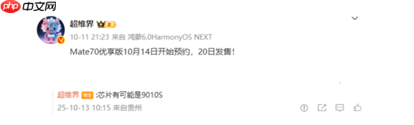 10月14日,最新消息显示,华为预计将于本月20日正式推出mate 70优享版。