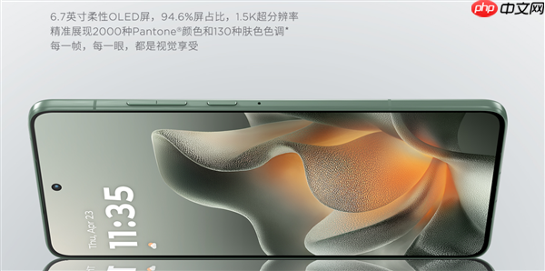 联想moto X70 Air配备一块6.7英寸OLED直屏,分辨率为2712×1220,支持120Hz高刷新率,并通过SGS蓝光低拖影认证及Pantone专业色彩认证。