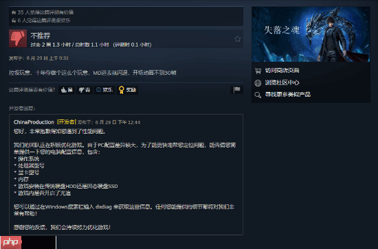 另外,针对部分玩家反映游戏存在的性能问题,开发者也回复表示已经知晓相关信息,并表示团队目前正在积极优化游戏。