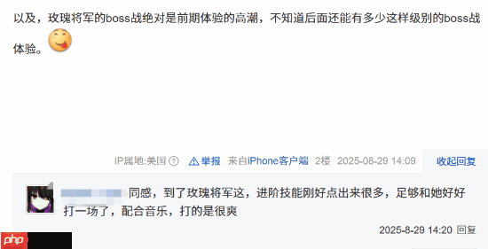 更有玩家特别称赞某段Boss战设计:“玫瑰将军那一战绝对是前期的高光时刻,希望后续还能有更多同等级别的战斗体验。”