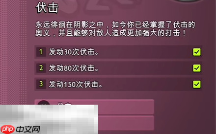 2、累计次数:分别完成30次、80次、150次伏击后,将逐步解锁“图穷匕见”的相关能力。