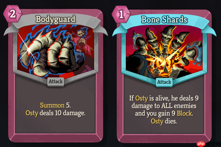 碎骨:若奥斯提存活,则对所有敌人造成9点伤害,并为你提供9点格挡;使用后奥斯提死亡。