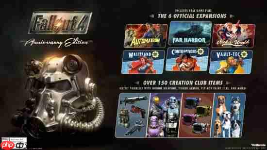 本作还将整合超过150个Creation Club内容,涵盖广受玩家喜爱的热门物品以及全新趣味元素。其中包括多种新武器、可为忠诚伙伴狗肉更换的哈士奇或斑点狗外观、游戏机制优化与任务拓展等,旨在为每位避难所居民提供更个性化、更具乐趣的废土冒险体验。